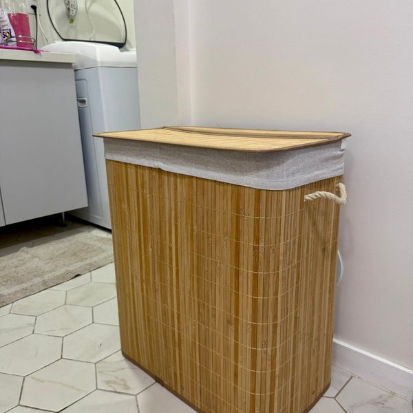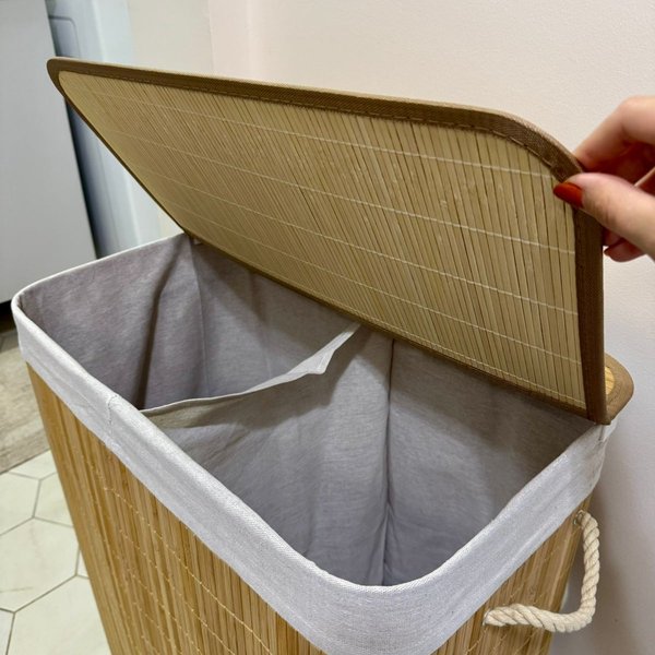 Armazene seus itens com elegância e organização no nosso Cesto Retangular em Bambu.